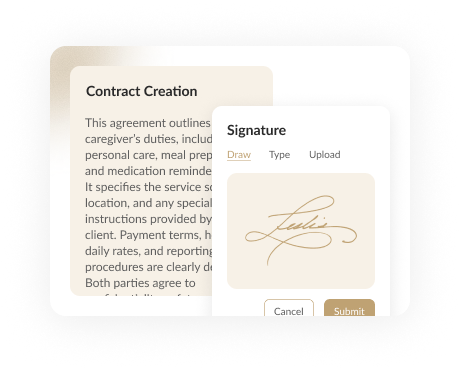After thorough discussion, the client creates the formal contract in the portal, and both parties sign digitally to officially start the care service